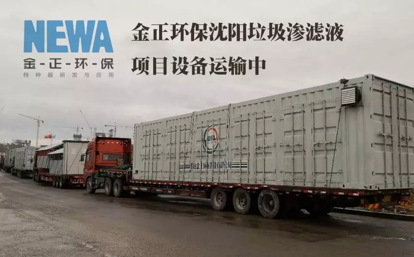 金正環??萍加邢薰居?018年4月3日簽訂第一期合同,4月13日首批5套日處理2100噸的DT特種膜設備已經發貨到現場,目前已進入調試階段。該項目體量大,處理難度高,工期極緊,金正環保從簽訂合同,所有設備從生產組裝到達現場,僅用了10天時間,這在垃圾滲濾液乃至高難廢水處理領域都很難做到。