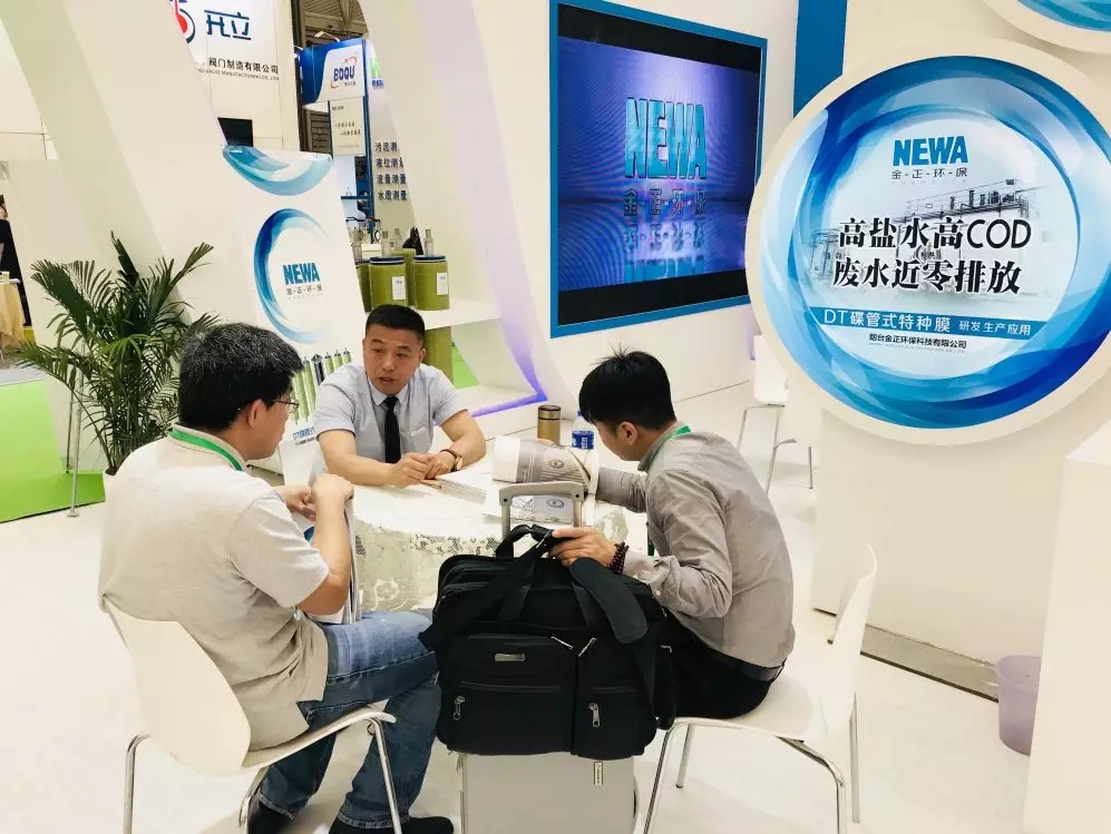 金正環(huán)保市場部部長王少嬡在展會同期“2018膜法在華東地區(qū)工業(yè)節(jié)水與水處理行業(yè)中應(yīng)用研討會”上,作《DTRO膜在工業(yè)園區(qū)高鹽廢水中的應(yīng)用》的現(xiàn)場報(bào)告,用多個(gè)成功案例介紹金正環(huán)保標(biāo)準(zhǔn)化,模塊化,集裝箱式DT特種膜設(shè)備的卓越效果,多位聽眾現(xiàn)場咨詢合作模式。