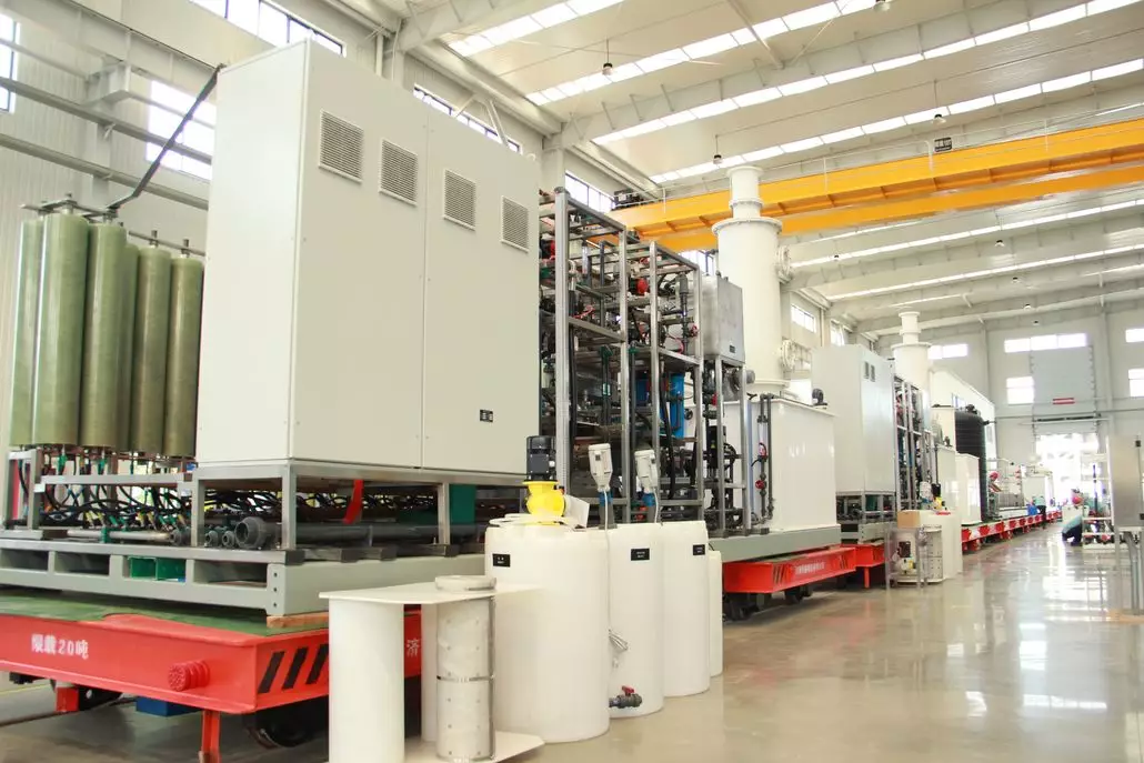 在市場部王部長的講解和帶領下,代表們參觀了金正環保產業園的系統集成車間、陶氏膜專用儲庫以及膜基材備料庫,王部長詳細介紹了金正DT特種膜自動化生產線調試情況和未來市場應用優勢、介紹了金正創新的標準化、模塊化、備貨制垃圾滲濾液與高鹽水設備的優勢、典型案例應用,為環保行業帶來了全新理念和經營方式。