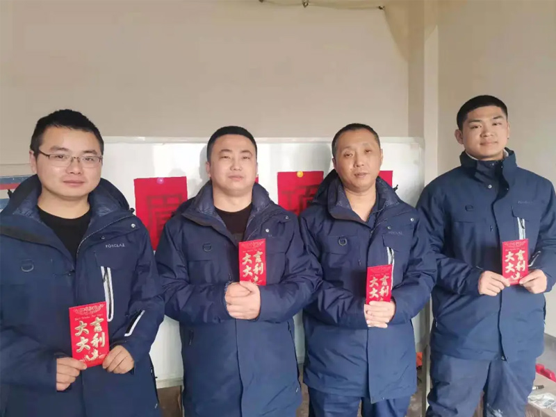 除夕,萬家團圓之際,金正環保各部門、各項目現場依然有人奮戰在工作崗位上,放棄了與家人團聚的歡聚機會,默默的奉獻服務,保證工作順利有序開展,公司執行副總裁傅進玉、運營副總裁馬世虎、管理副總裁于萍等領導帶隊,向堅守在項目現場和公司各崗位值班人員送去了節日問候和紅包。