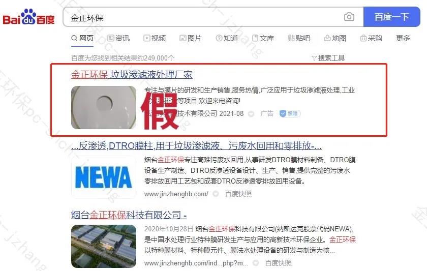 近日,某公司在百度上擅自使用我司商號及產(chǎn)品圖片,肆意宣傳DTRO膜組件相關信息。此外,江蘇市場出現(xiàn)冒充我司品牌的偽劣產(chǎn)品,以次充好,欺騙客戶。這些行為不僅涉嫌侵害了我司的正當權利,還誤導廣大客戶。對此,我司非常重視,將依照相關法律,予以追責,堅決打擊各種侵權、假冒行為。