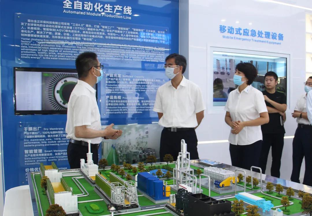 曾贊榮副省長一行先后參觀了煙臺金正環保公司展廳、全自動化生產線和設備裝配車間,詳細了解產業布局、核心產品、核心技術、成本優勢、智能制造、項目案例等情況。曾贊榮副省長對煙臺金正環保在水處理領域取得的成績給予充分肯定和認可,希望公司再接再厲,不斷加大研發力度,拓展新的業務領域,尤其能夠在鄉鎮和農村污水治理領域形成突破,為農村生態環境改善提供更多的新技術、新裝備,為保衛祖國的綠水青山做出應有的貢獻。