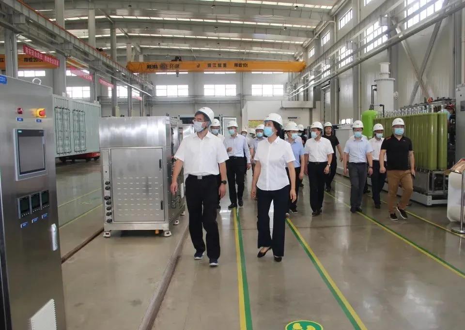 8月24日上午,山東省副省長曾贊榮帶領省政府辦公廳領導到煙臺金正環保視察調研。煙臺市委常委、副市長曹強強,萊山區政府副區長陳浩鵬等領導陪同調研。煙臺金正環保董事長張卓作匯報。