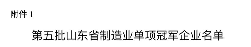 榮獲!山東省制造業單項冠軍企業
