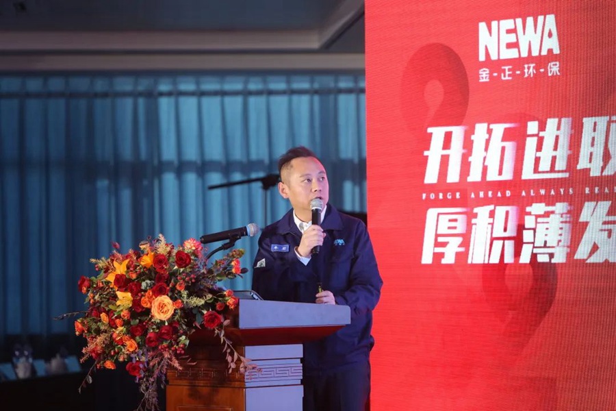2021年是不平凡的一年,是收獲滿滿的一年。一部《金正2021年度大事記》視頻短片拉開了表彰大會(huì)的序幕。大事記短片以時(shí)間軸的方式展現(xiàn)了2021年全體金正人用拼搏和努力在污廢水處理行業(yè)取得的收獲與成果。