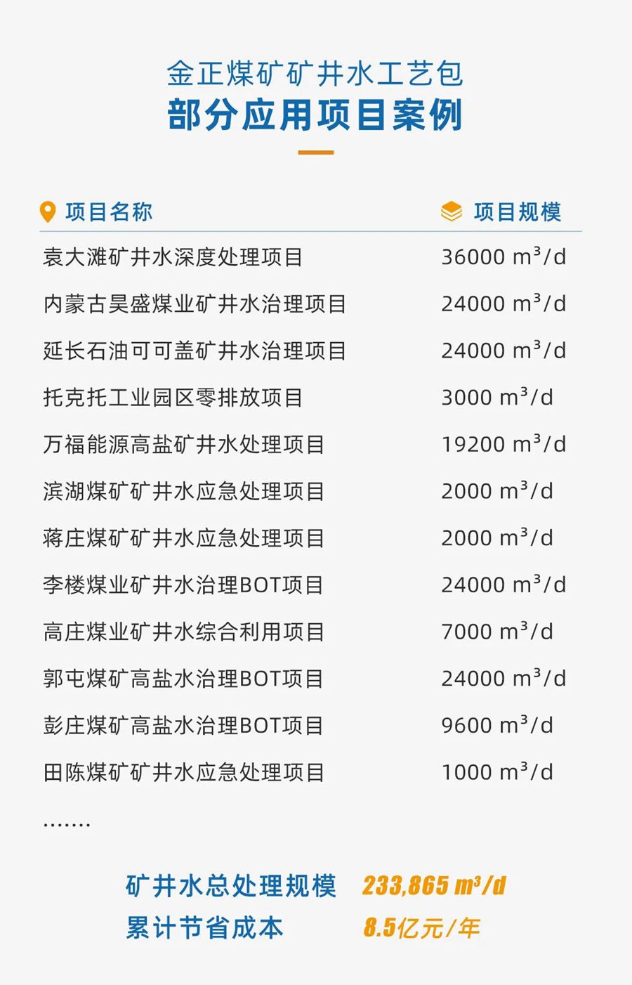 不出意料,是煙臺金正環保的煤礦礦井水低成本零排放整體解決方案。高礦化度的化工園區高鹽水、煤礦礦井水、脫硫廢水等污廢水,含鹽量高,直接排放會破壞生態、污染環境。從產業發展、水資源循環利用及生態環境保護等角度考慮,高濃鹽水零排放是必然選擇。而如何突破零排放的技術瓶頸,降低零排放經濟成本,是目前許多業內企業面臨的共同難題。當前,傳統工藝處理此類廢水,存在很多不足:工藝鏈冗長、藥劑消耗量大、產生的固廢污泥難處置、膜易結垢不利于系統穩定運行、雜鹽產出量大,最終使水處理成本高昂,也無法滿足環保要求。