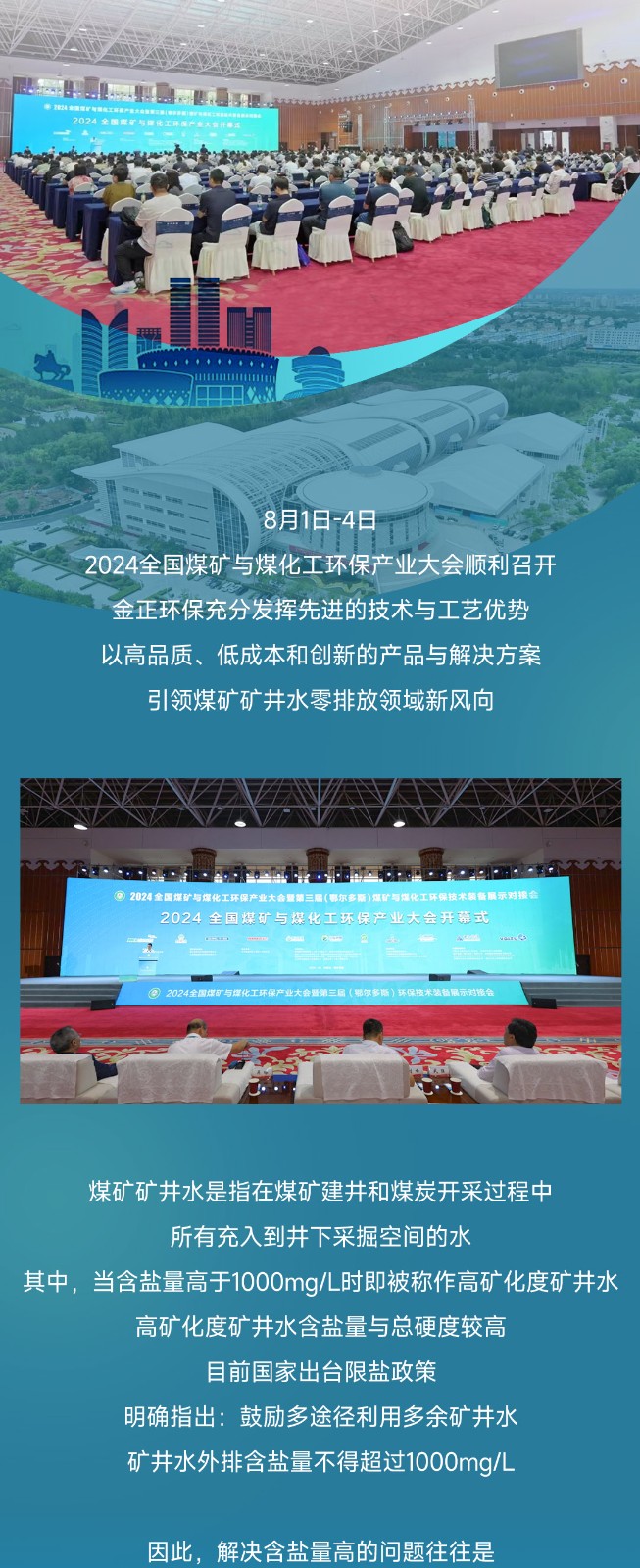 煙臺(tái)金正環(huán)保亮相2024全國(guó)煤礦與煤化工環(huán)保產(chǎn)業(yè)大會(huì),分享礦井水零排放專利技術(shù)創(chuàng)新成果!