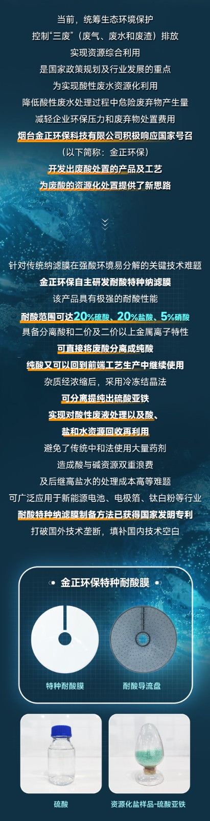 膜技術(shù)前沿丨煙臺金正環(huán)保耐酸平板膜攻克酸性廢液資源化處理難題,助力循環(huán)經(jīng)濟發(fā)展